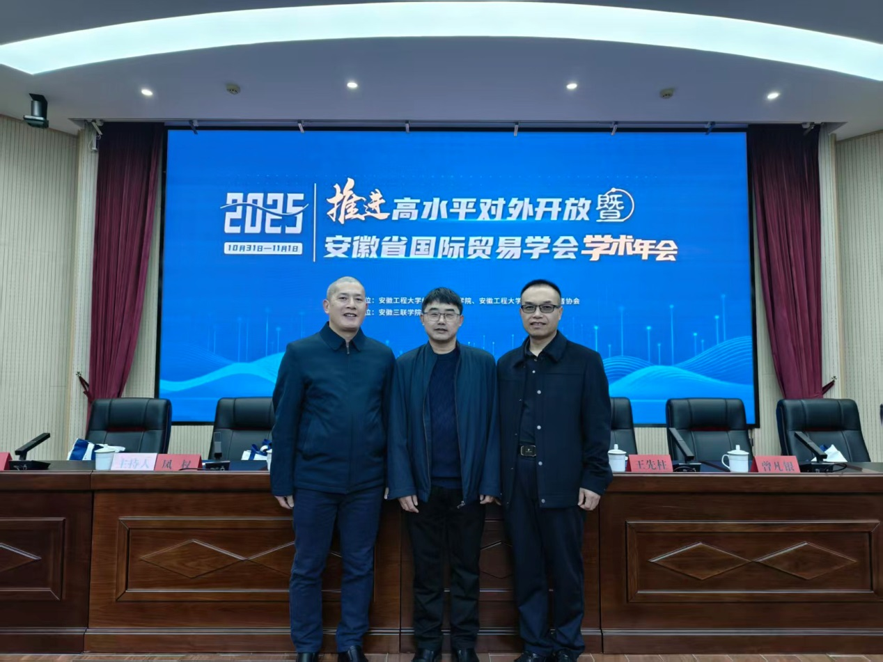 10月31日—11月1日,由安徽省国际贸易学会与安徽工程大学共同主办,安徽工程大学tyc7111cc太阳成集团承办、安徽三联学院协办的“推进高水平对外开放暨2025年安徽省国际贸易学会学术年会”在芜湖市顺利召开。来自省内20余所高校和实业界60余位专家、学者参加了本次年会。tyc7111cc太阳成集团黄先军教授、殷功利教授、李裕鸿副教授应邀参加了会议。