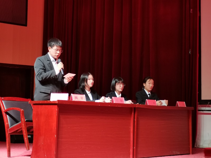 首先开始的是季军争夺赛。“三带一”队和“有言以”队围绕“学风建设依靠制度约束还是自我约束”展开激烈辩论。正反双方清晰的思路和精彩的陈词给在场观众留下了深刻的印象。