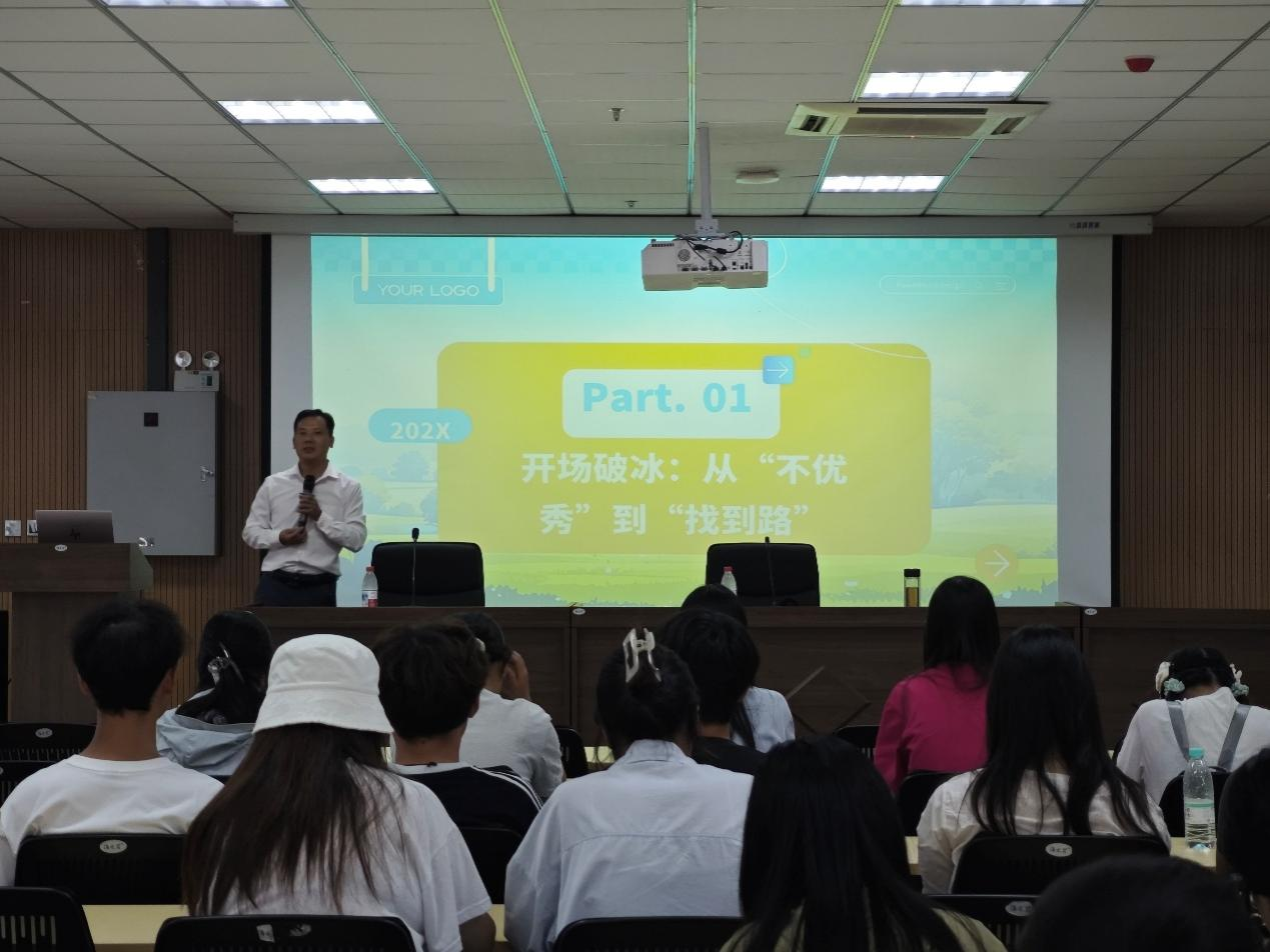 万彬老师以其真诚的分享和独特的成长轨迹,深入浅出地阐释了从“学困生”转变为寻得适合自身发展道路的蜕变历程。他着重指出,成功并非仅有“一路优秀”这一单一范式,关键在于坚守底线、主动思索并持续付诸行动。讲座期间,万彬老师借助“学业奠基—职业选择—敬业升华”的逻辑脉络,系统地分享了如何筑牢学业根基、挖掘差异化优势,如何在职业选择中另辟蹊径、掌握面试技巧,以及如何在敬业过程中实现个人突破与时代担当。