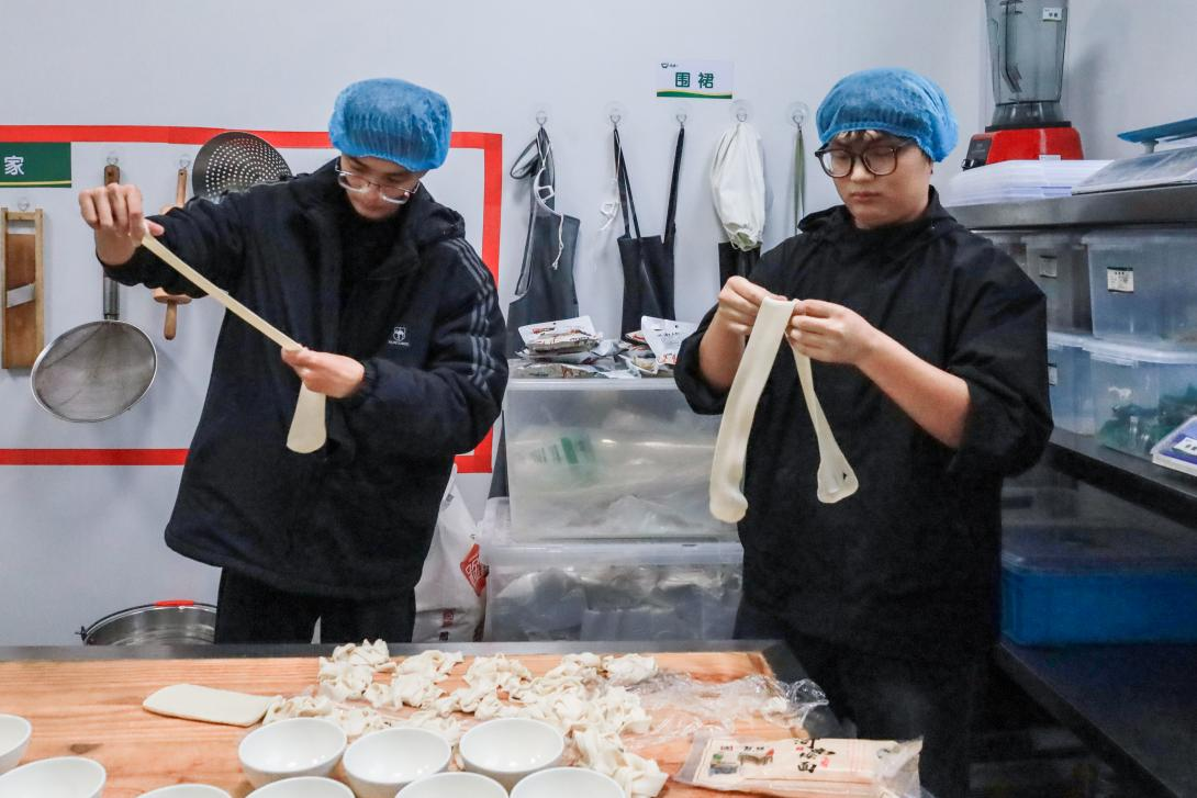来自越南的物流管理专业2025级国际班的阮皇明舒,不仅学会了中国饺子的包法,更将家乡小吃的包法融入饺子制作。她将面皮对折后沿边缘向内翻卷一圈,再用指尖捻出齿轮状的细密花边,一款“越南风”的中国饺子就此成型。“中国饺子的独特包法和软嫩口感,对我来说都是一种全新体验。”阮皇明舒笑着与同伴拍照留念,并表示要将这次包饺子的新鲜经历分享给远方的家人朋友。