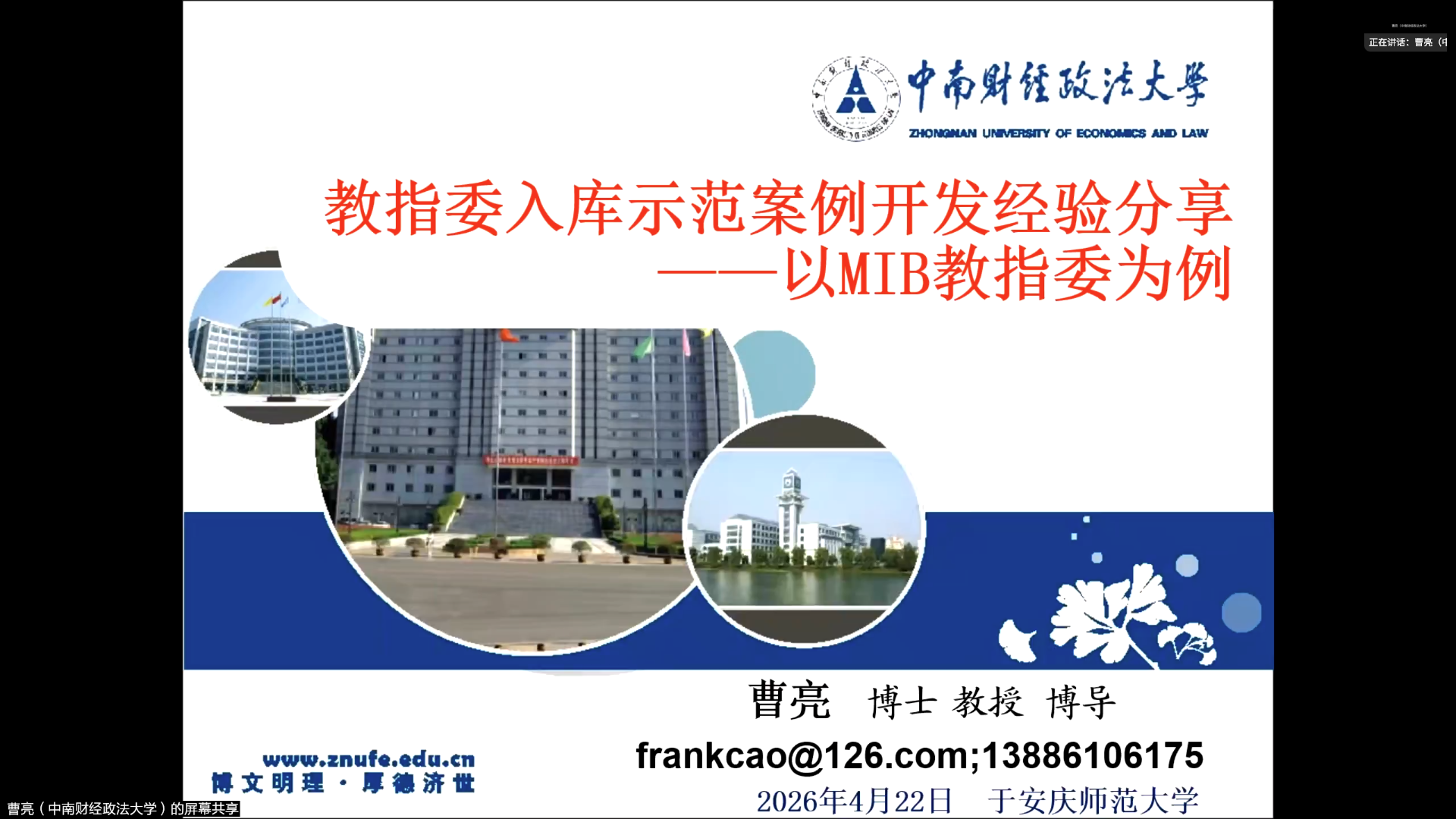 4月22日,由科研处、tyc7111cc太阳成集团联合主办,安徽省数字经济研究中心、太阳成tyc7111cc青年社科学者协会承办的“经管有道”第36期学术报告会成功举办。中南财经政法大学曹亮教授应邀作题为“教指委入库示范案例开发经验分享——以MIB教指委为例”的学术报告,学院部分教师线上参加学习交流,报告会由殷功利教授主持。