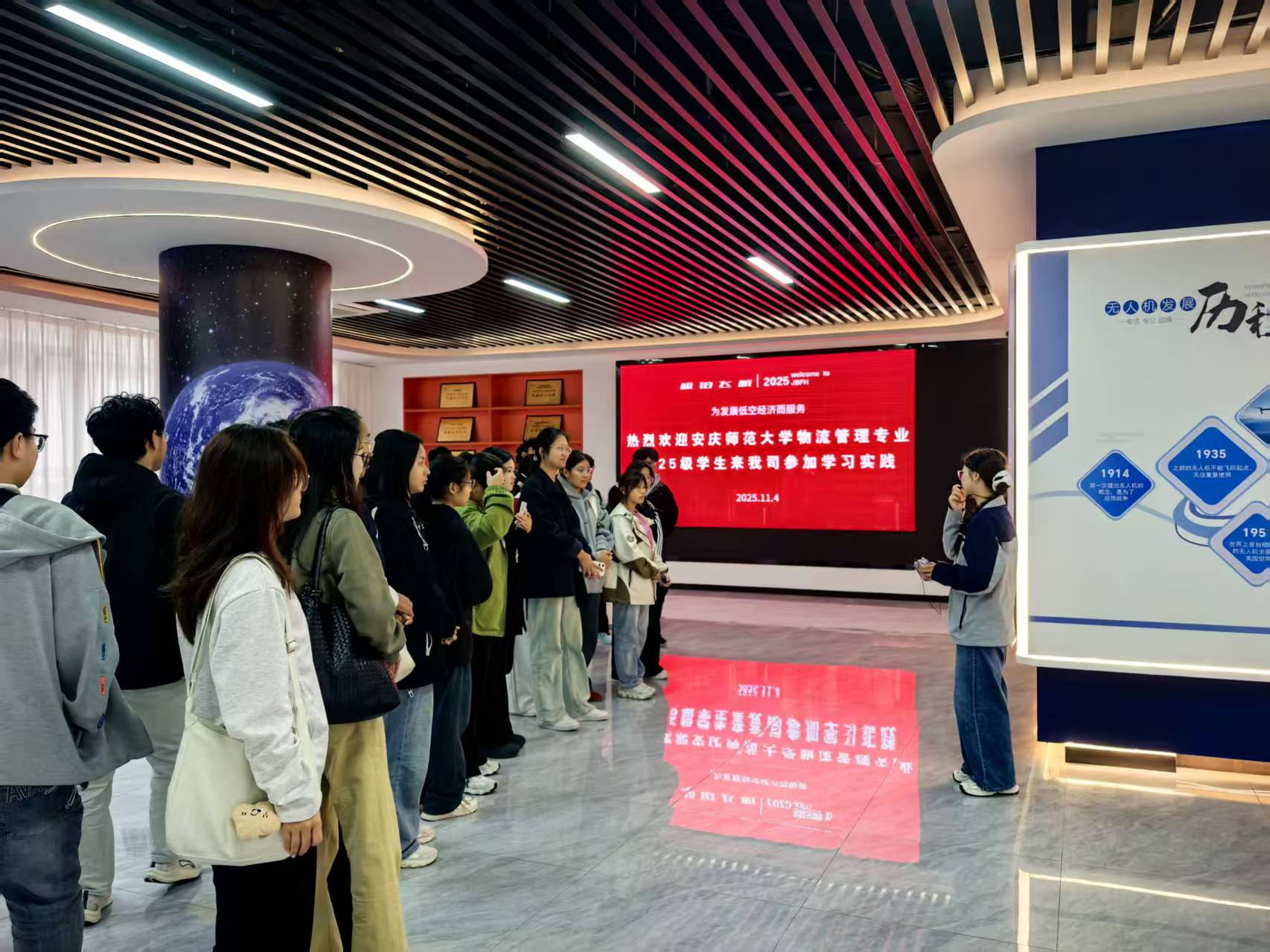 近日,物流管理教研室组织2025级新生赴安徽极铂飞航科技有限公司和安徽运通达物流科技有限公司开展校外实践活动。2025级物流管理本科生、国际商务硕士研究生以及部分教师代表参加此次活动。