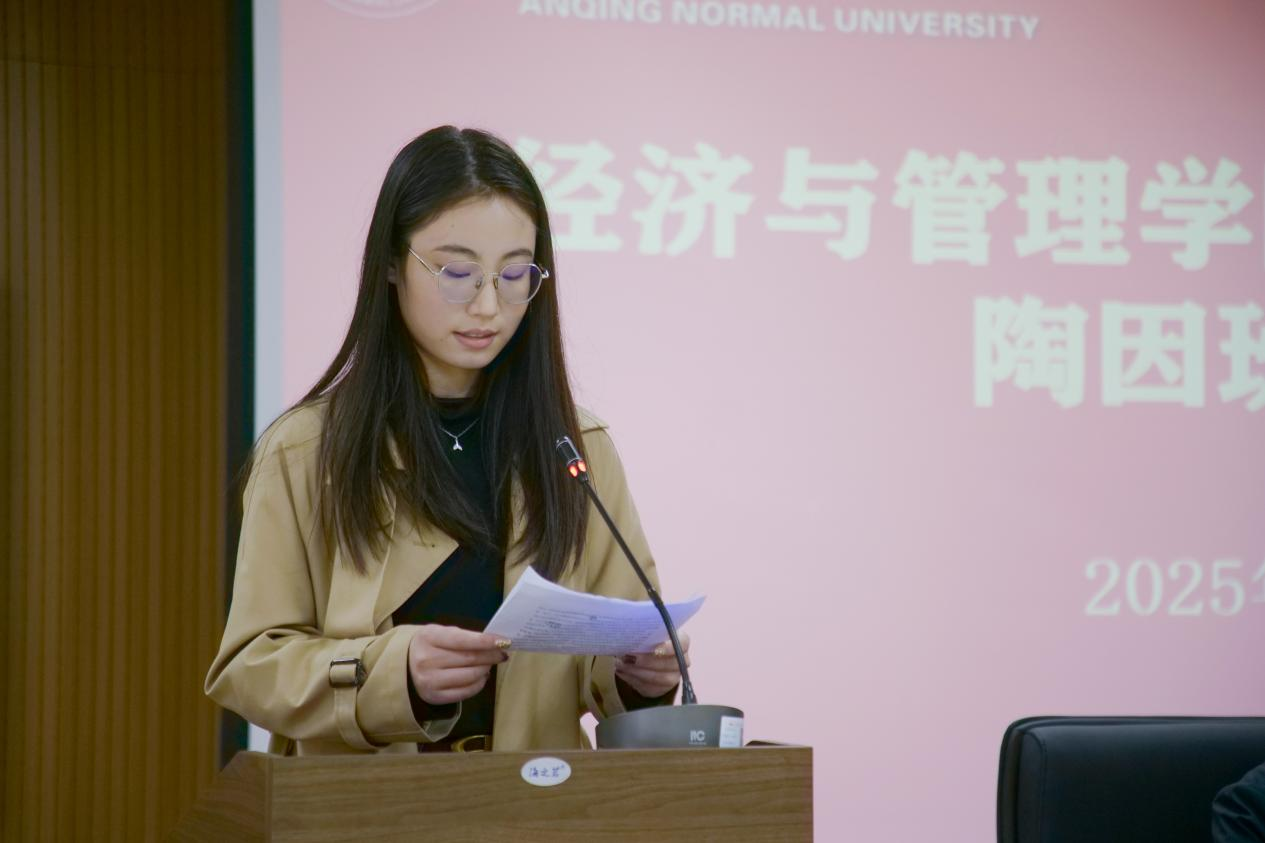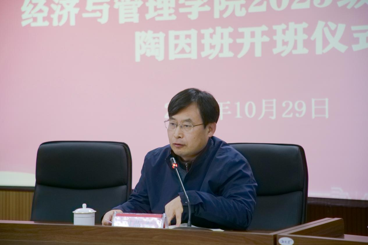 教务处处长潘锦云在发言中指出,陶因班以 “南陶北马” 著名经济学家陶因先生命名,是学校响应教育部顶层设计、在高等教育普及化背景下重点打造的第三届卓越班级。他同时向学子提出三点期望:一是以 “立大志、成大才” 为目标,主动向安庆籍经济领域杰出人才看齐;二是脚踏实地夯实专业基础,持续提升综合素养;三是珍惜学校提供的专属培养资源,以四年潜心耕耘筑牢长远职业发展根基。