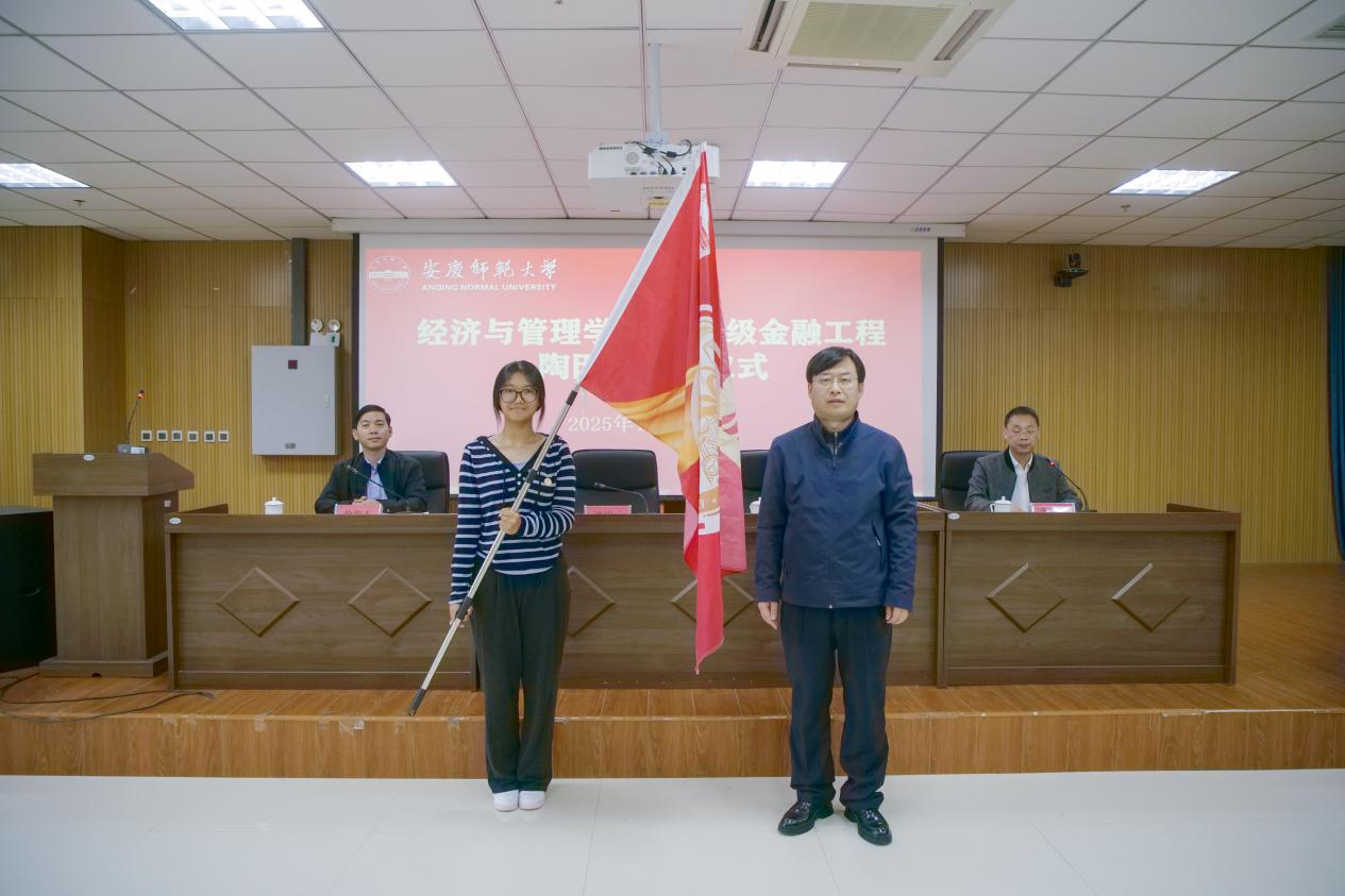 仪式现场,学院党委书记刘燕杰为2025级陶因英才班授旗,鲜红的班旗象征着荣誉与使命,也标志着新生们正式开启卓越培养之路。